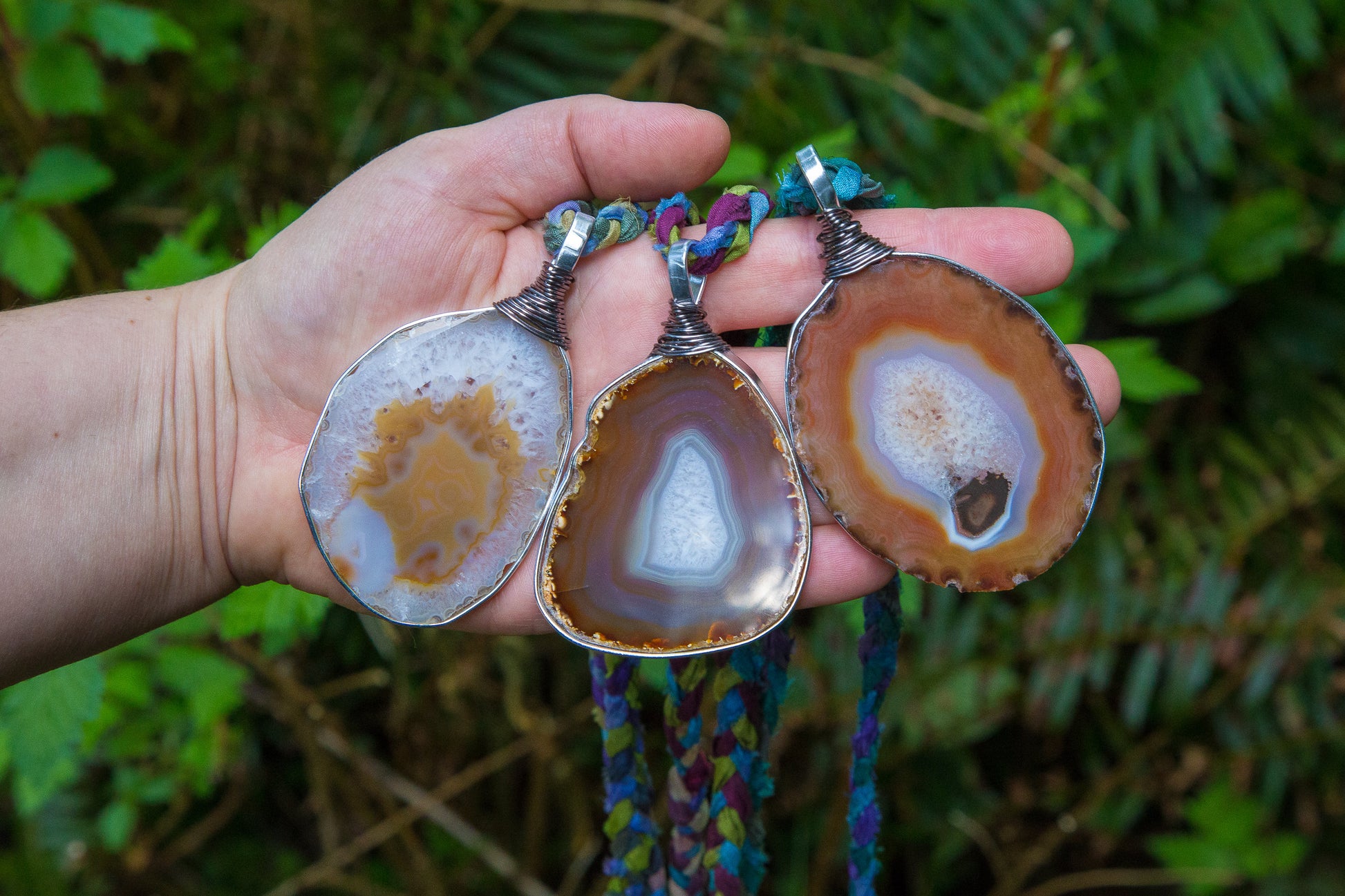 Used for a necklace or personal Energy Crystal, these Agates slices are on the larger side. See photos for size reference.