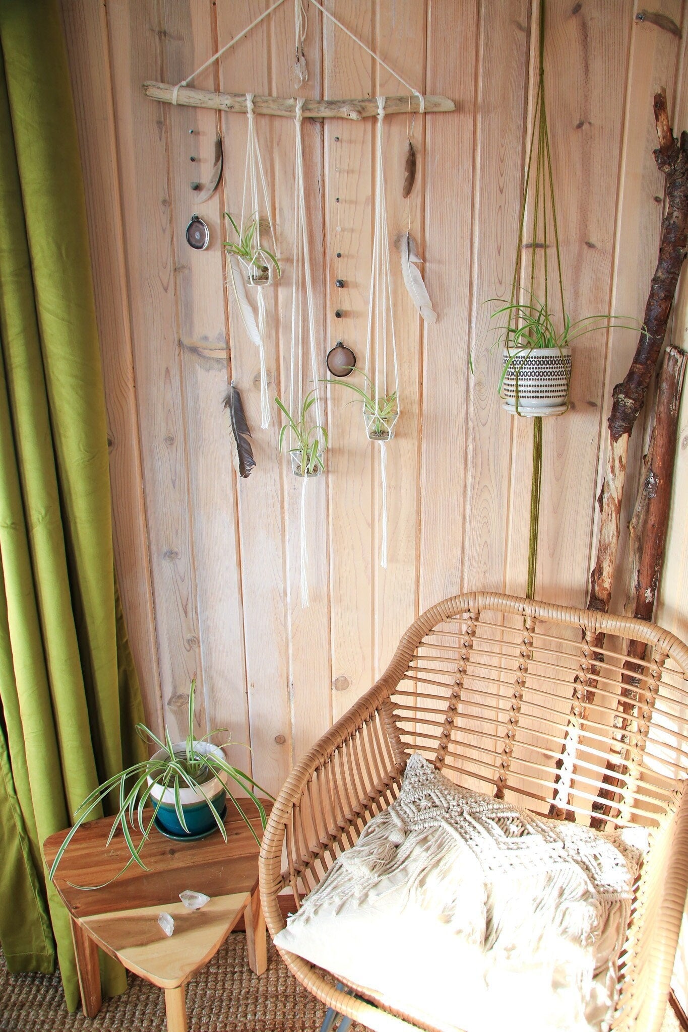 Driftwood Wall Hanging | agate slice gemstone feather 3 piece planter candle holder