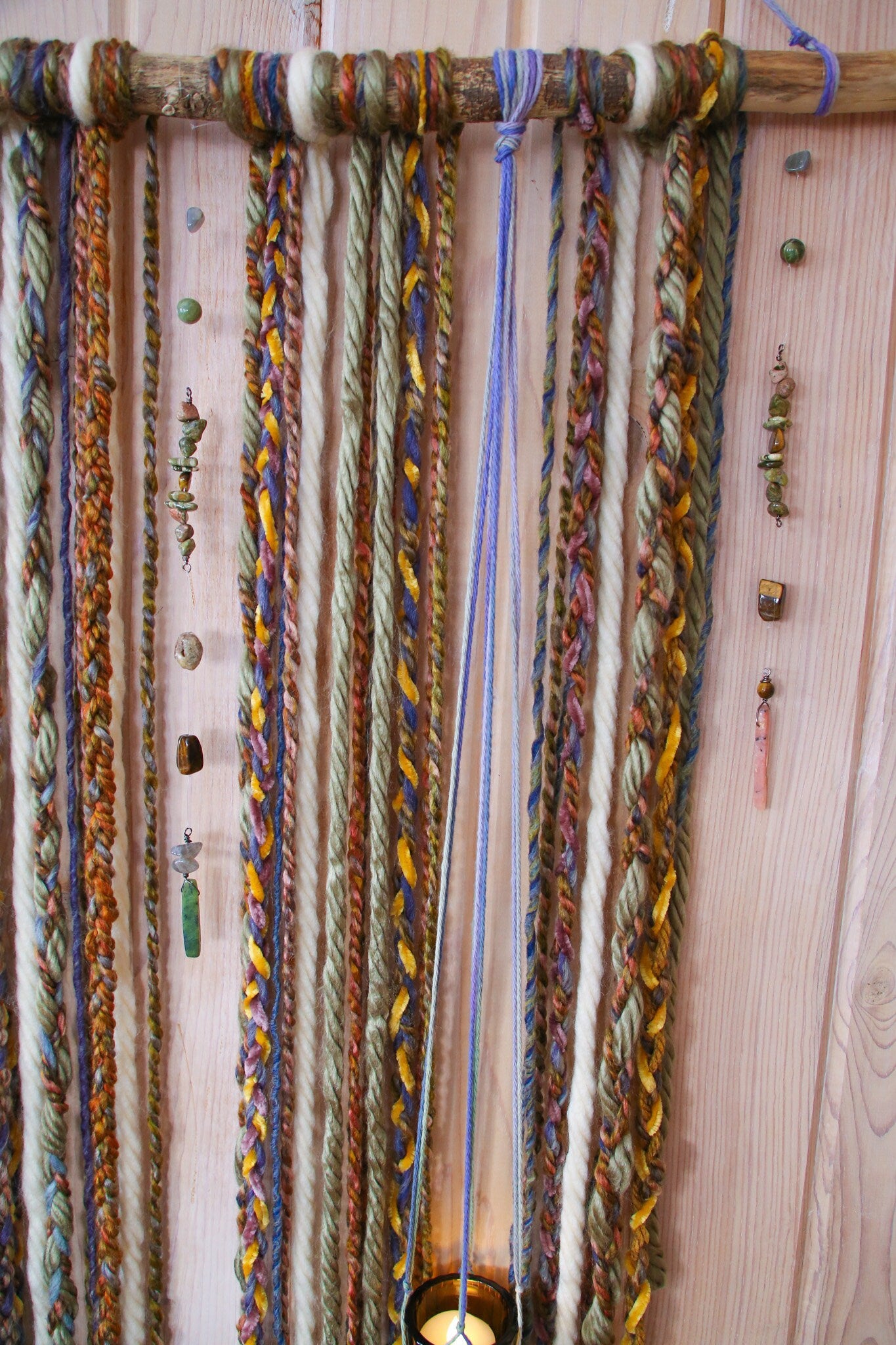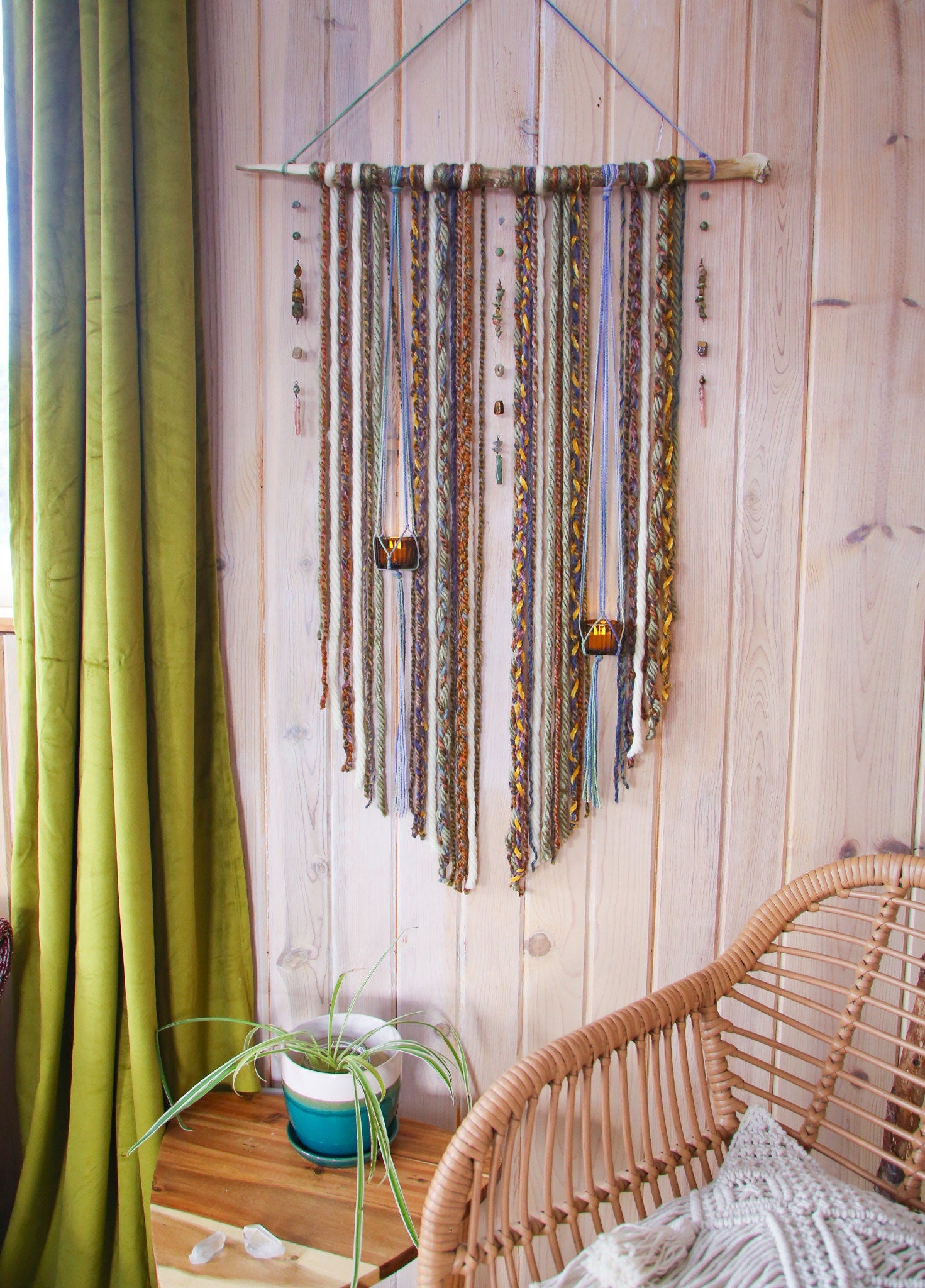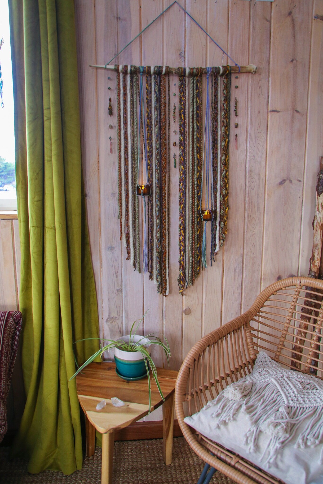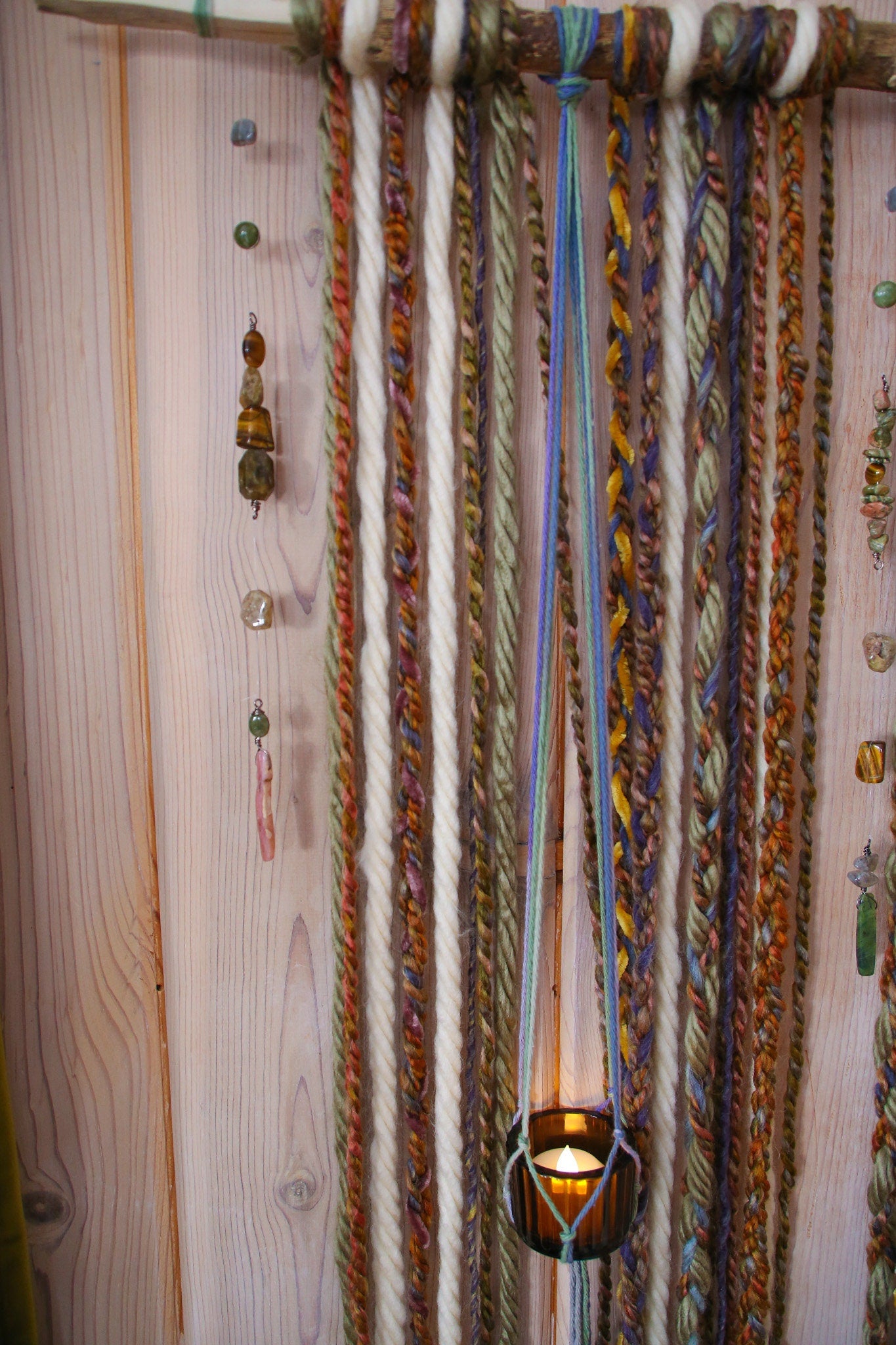 earthy gemstone double candle holder driftwood wall hanging / boho home decor / nature wall art / boho style / hanging candle holder